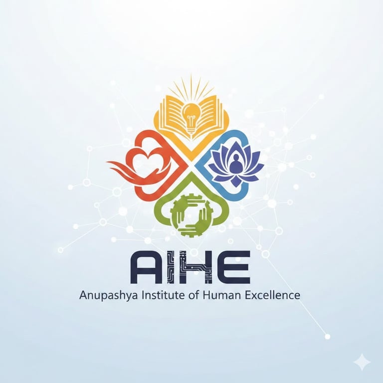 The Anupashya Institute of Human Excellence (AIHE) leverages the Framework of Technology of Human Excellence to create an integrated path for holistic development. By seamlessly merging modern technological insights with the timeless wisdom of the four yogas- Knowledge, Love, Meditation, and Work-AIHE empowers individuals to achieve their highest potential.
